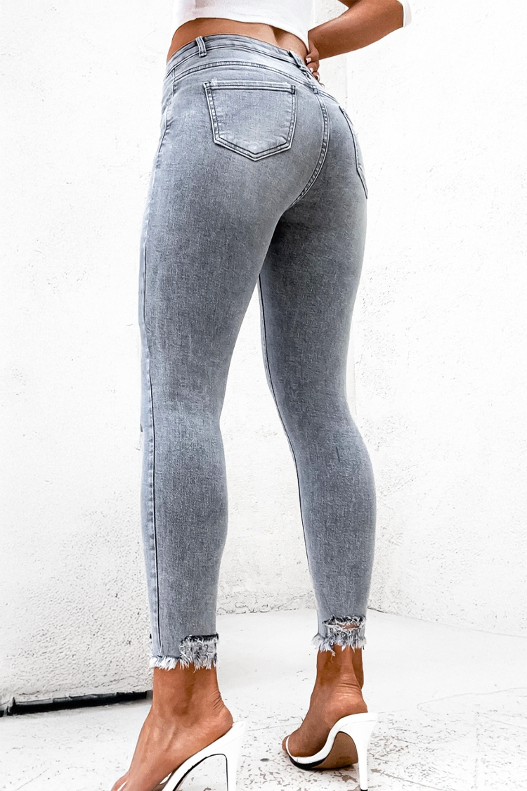 - Model ima visok struk i precizan kroj i moderan izbledeli efekat.