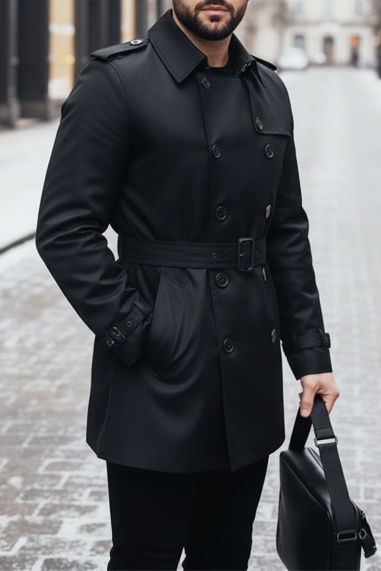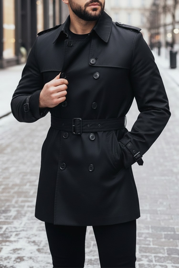 - Stilski mantil sa kragnom i kaišem u crnoj boji koji morate imati u svom garderoberu.