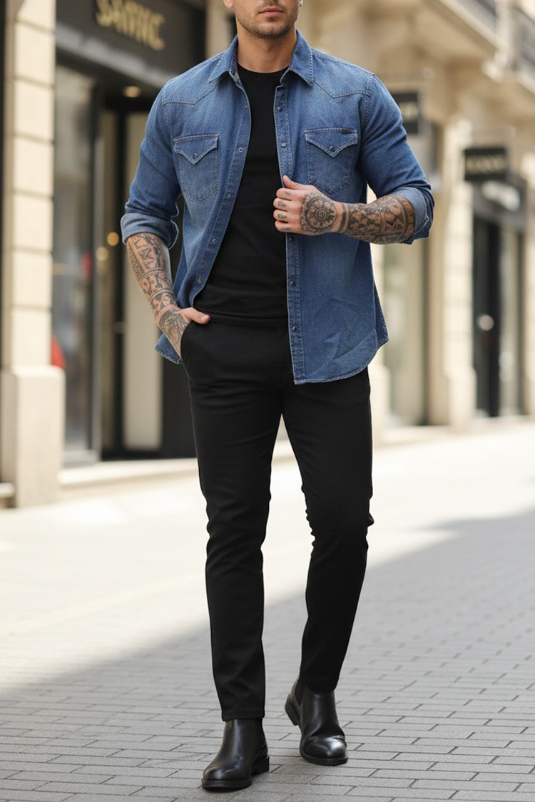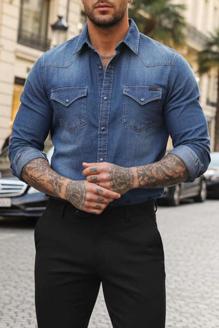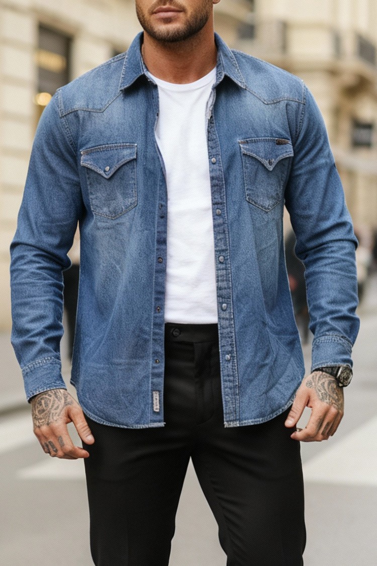 • Praktična muška košulja čistog dizajna, sa preklopnim džepovima i tik tak kopčom, pogodna za razne modne kombinacije.