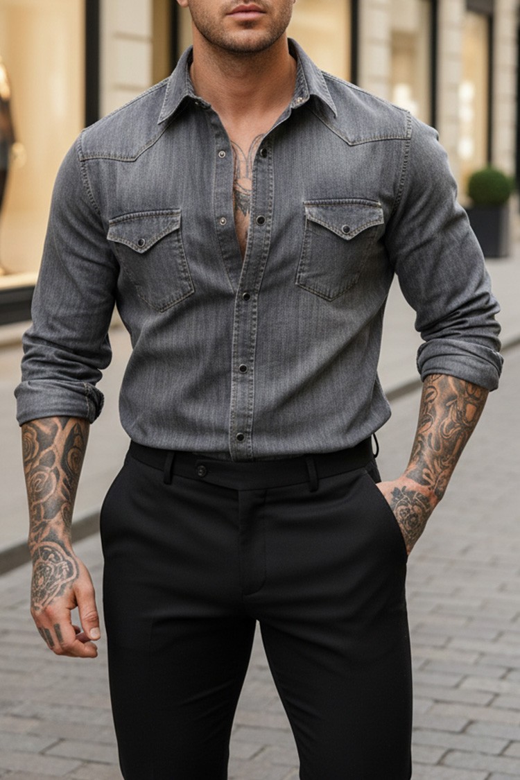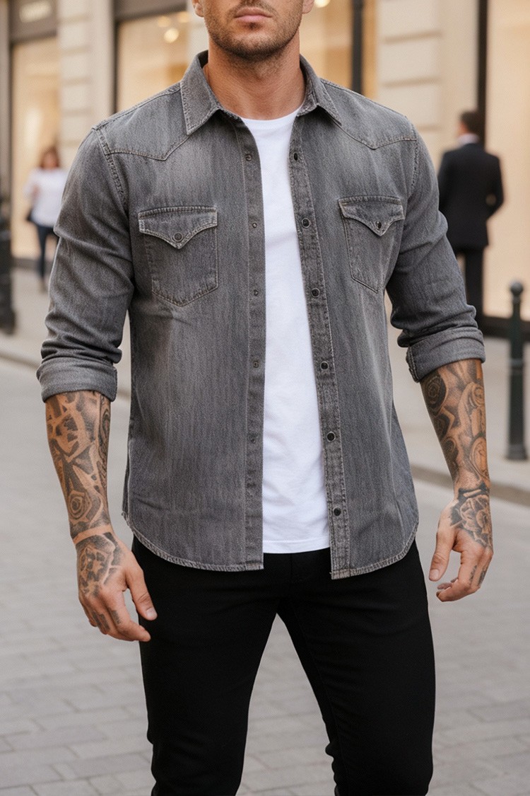 - Praktična muška košulja čistog dizajna, sa preklopnim džepovima i tik tak kopčom, pogodna za razne modne kombinacije.