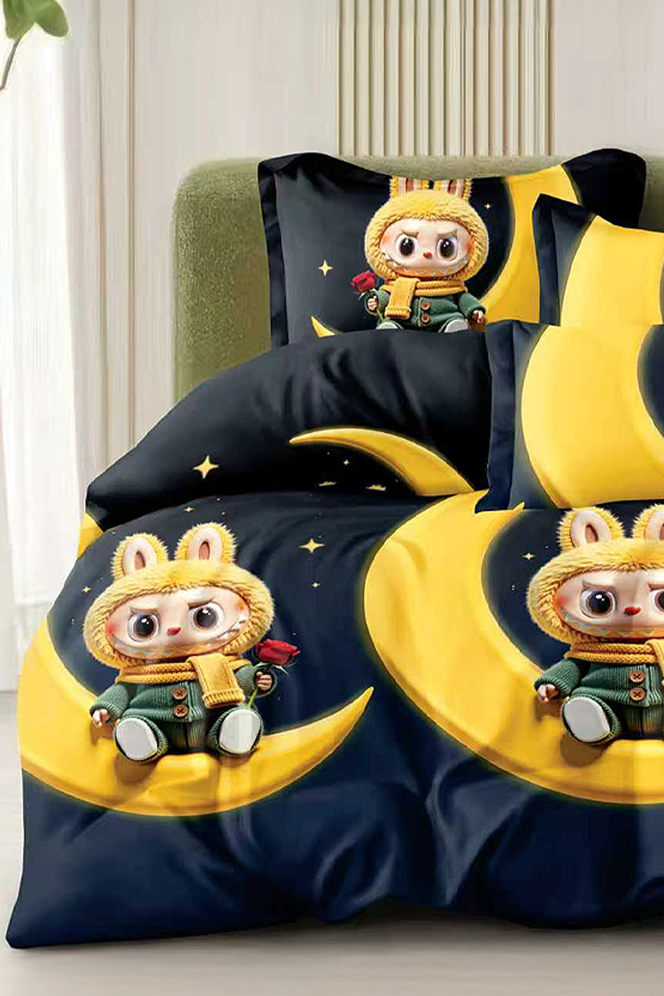 komplet posteljine LABUBU BLACK 160x200 cm pamuk - 4 dela