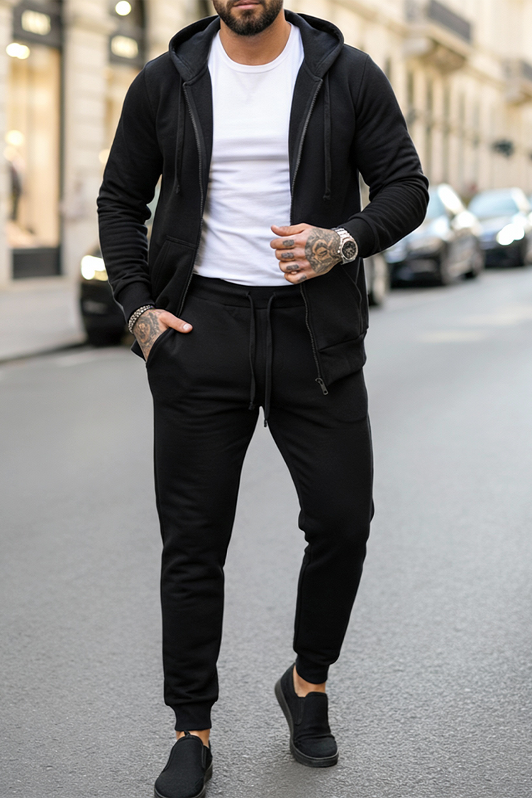 - Udoban muški dvodelni komplet u trendi boji, koji se sastoji od dukserice i pantalona.