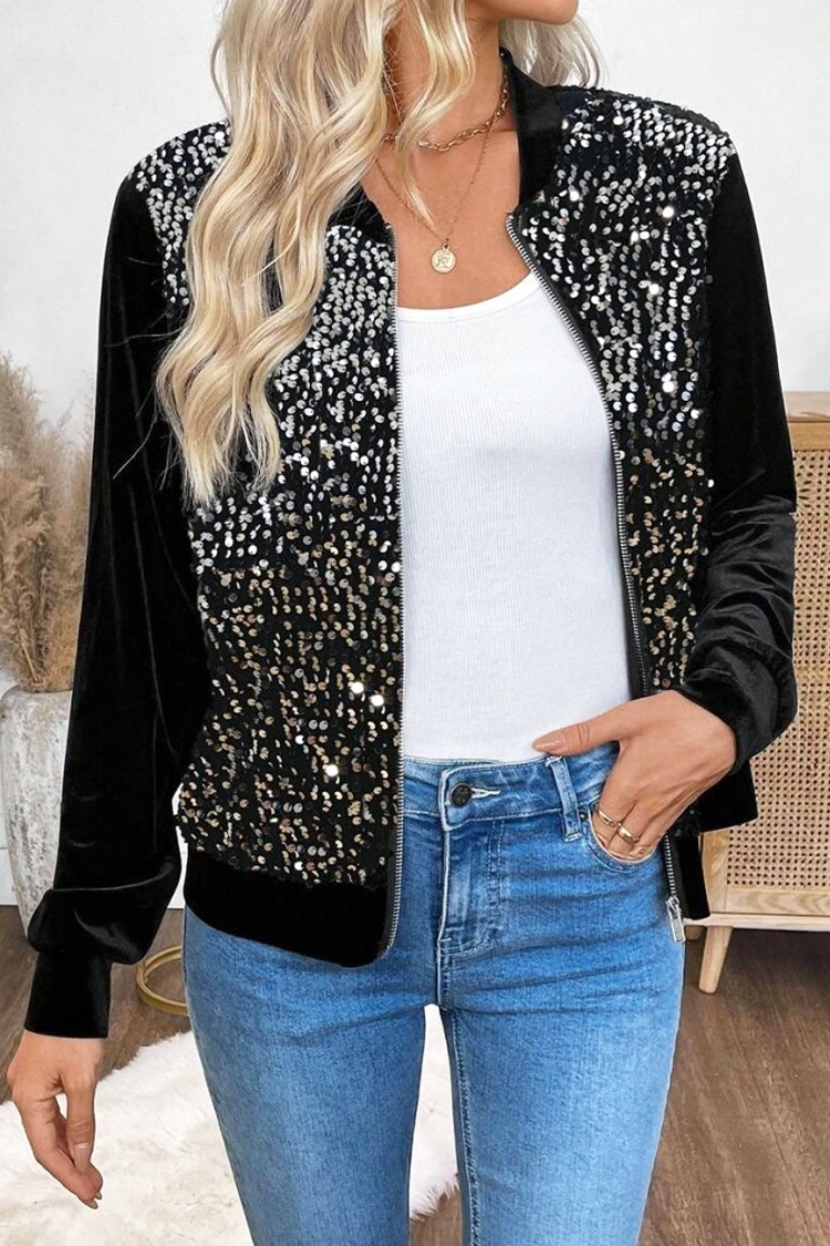 - Model ima klasičan kroj, somotski dezen i šljokice po celoj dužini.