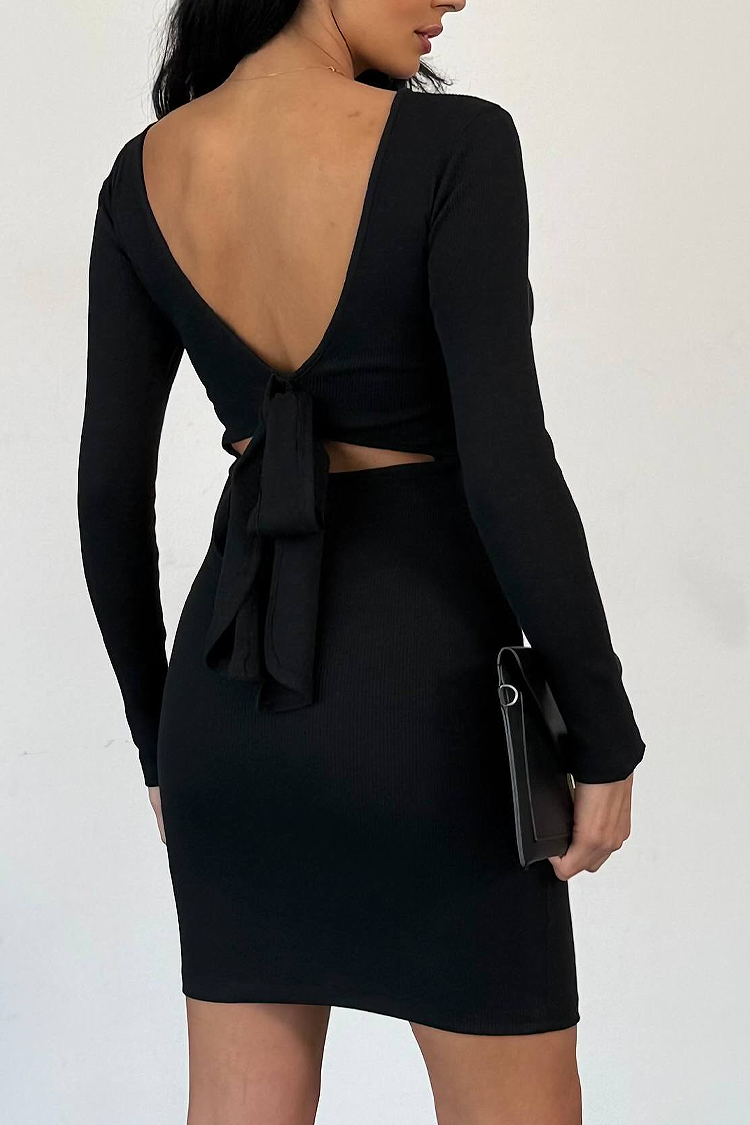 - Za vaš stilski izgled, izaberite ovu kratku haljinu sa jednobojnim dezenom i golim leđima.