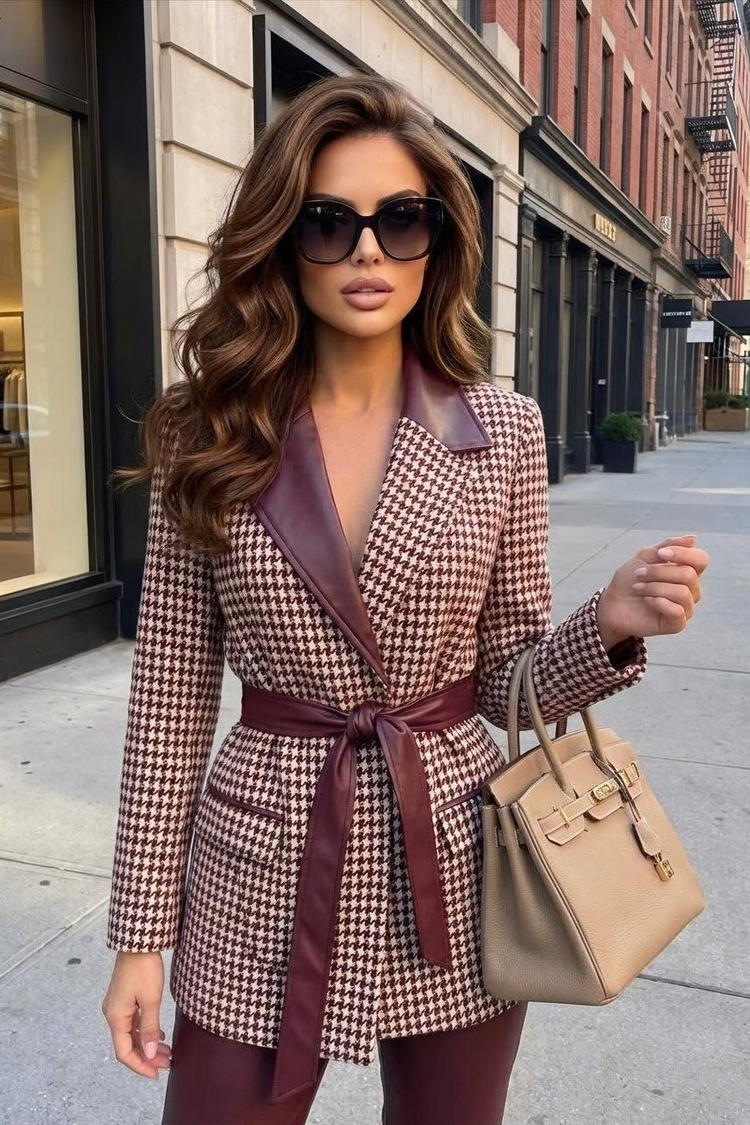 - Spojite stil sa udobnošću! Model ima efektan dezen, kragnu, detalje od eko kože i kaiš od istog materijala.