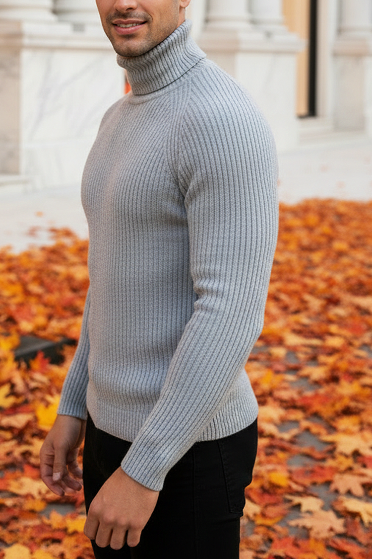 - Topli muški džemper sa polo kragnom i jednostavnim dizajnom u trendi boji, pogodan za razne modne kombinacije.