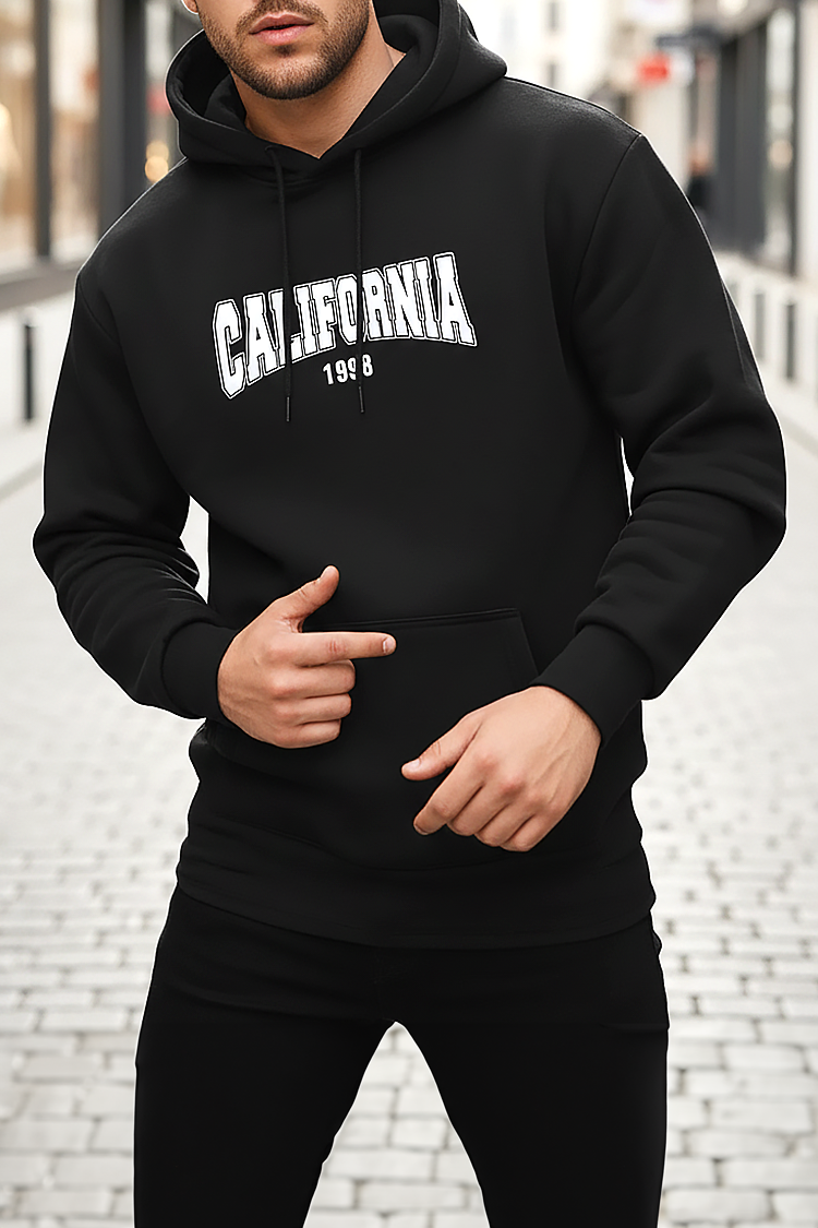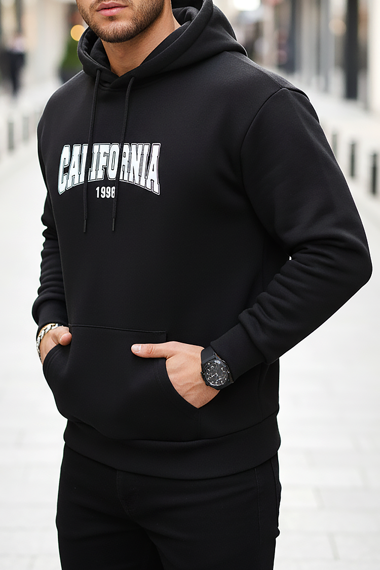 • Praktična muška dukserica sa printom u crnoj boji, pogodna za razne modne kombinacije.