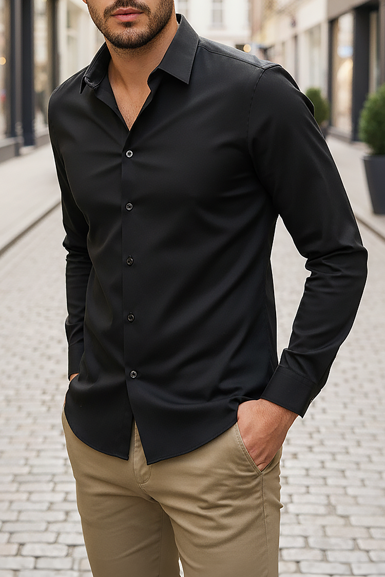- Elegantna muška košulja klasičnog dizajna u trendi boji, pogodna za razne modne kombinacije.