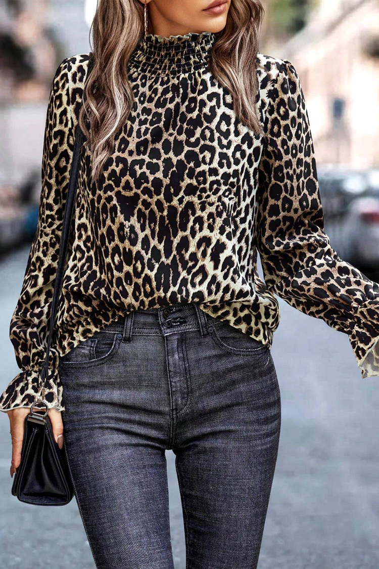 - Model ima duge rukave i udoban kroj, duge rukave i leopard print.
