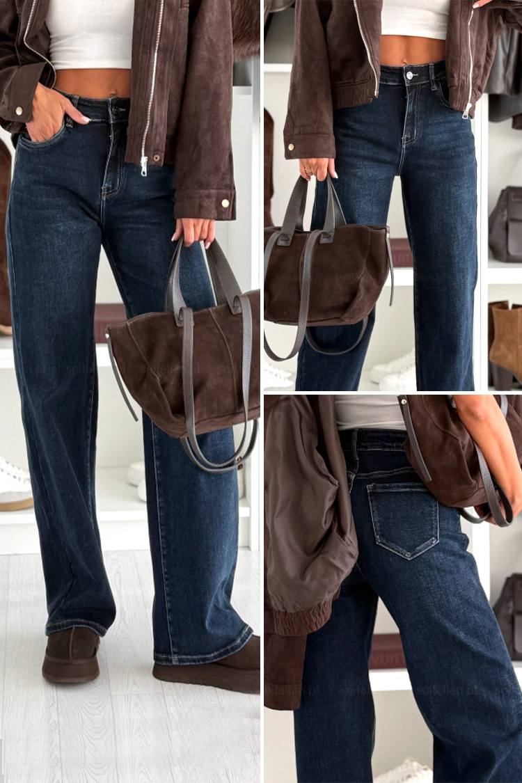 - Model ima visok struk, široke nogavice i moderan dizajn.