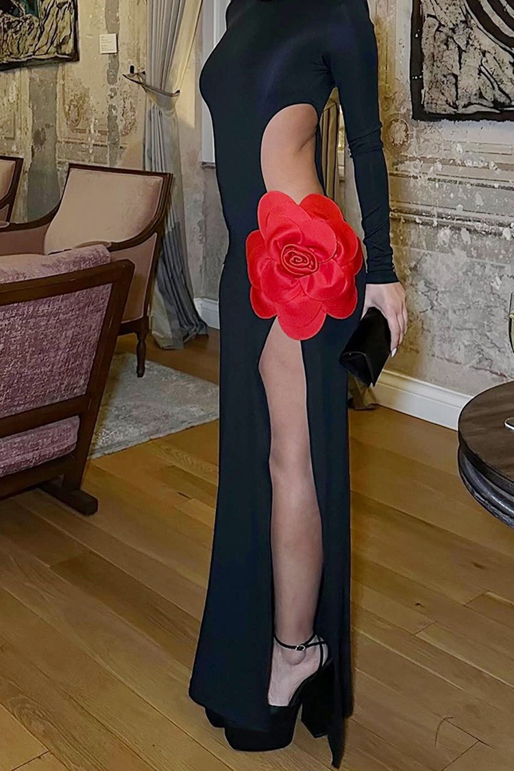 - Model ima seksi šlic, trendi, dekorativan cvet i okrugli dekolte.