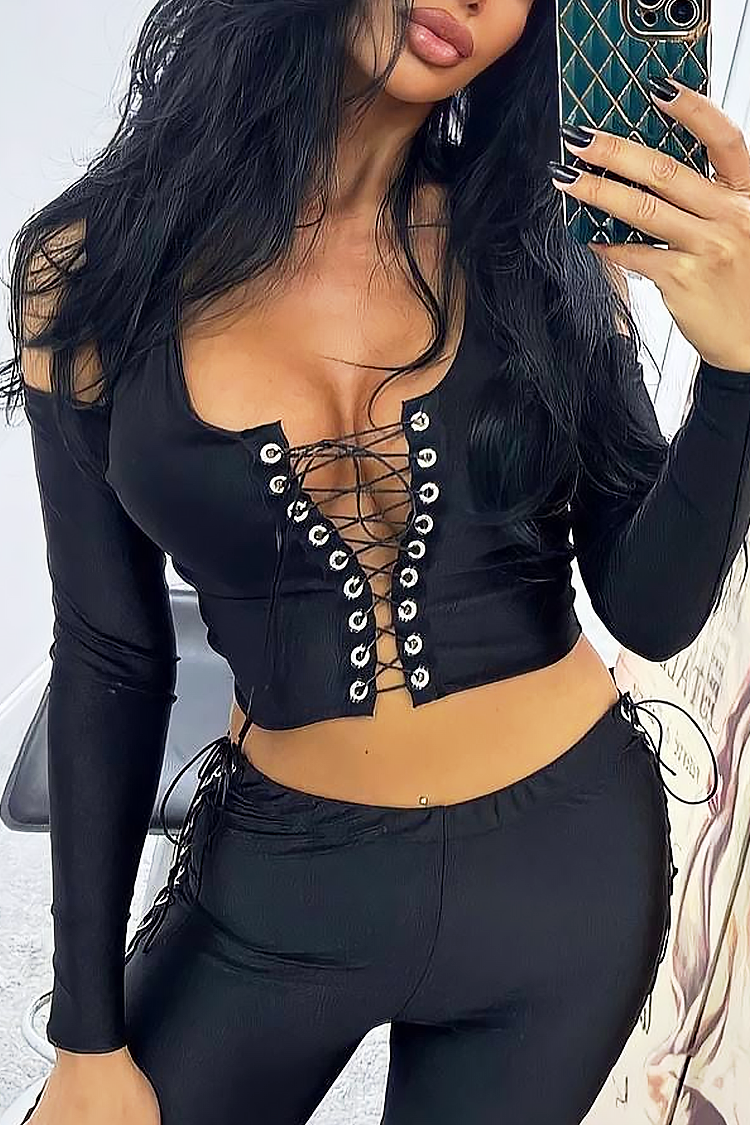 - Za atraktivan, svečani izgled, izaberite ovaj dvodelni komplet sa trendi vezicama.