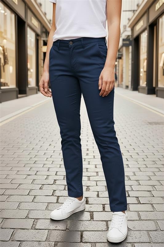 - Ženske farmerke osnovnog modela u tamnoplavoj boji, pogodne za svakodnevni život ili šetnju.