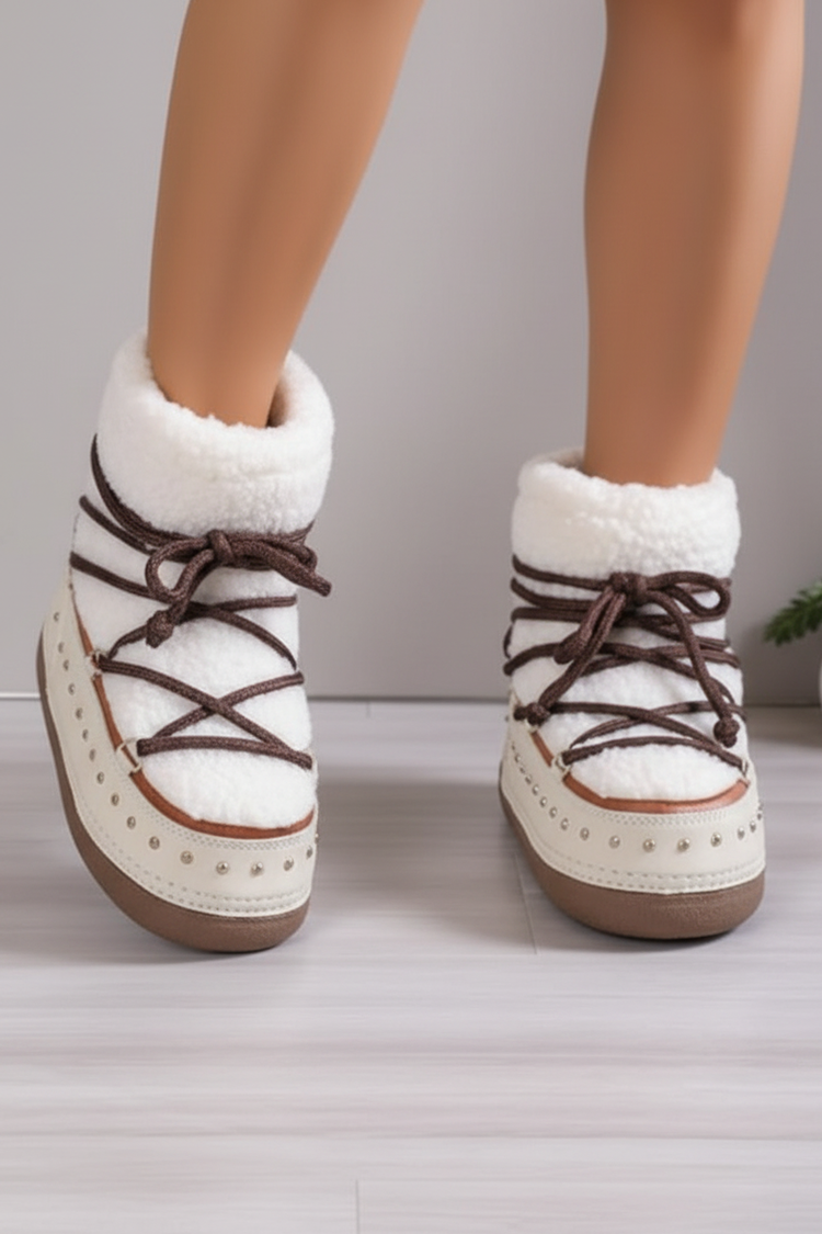 - Tople ženske snegarice izrađene od vodootporne tkanine, ukrašene pahuljastim eko krznom u trendi boji.
