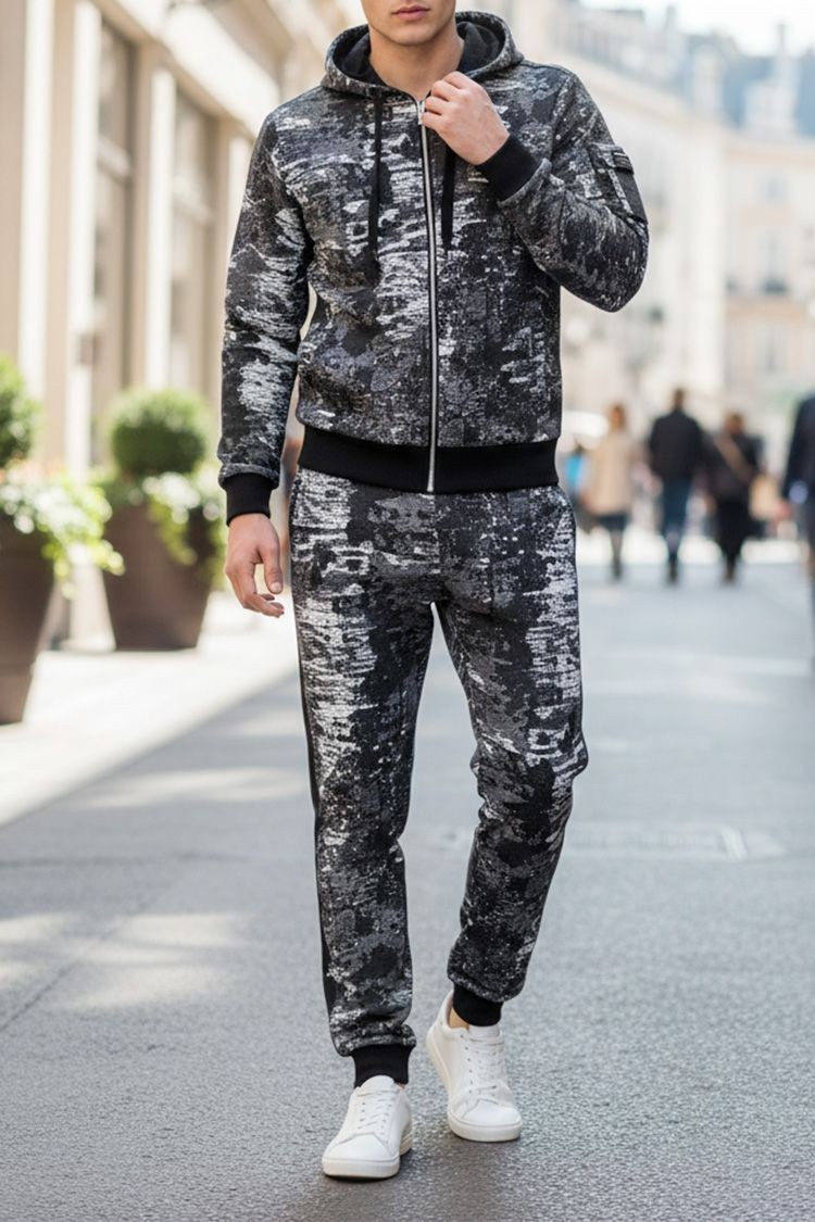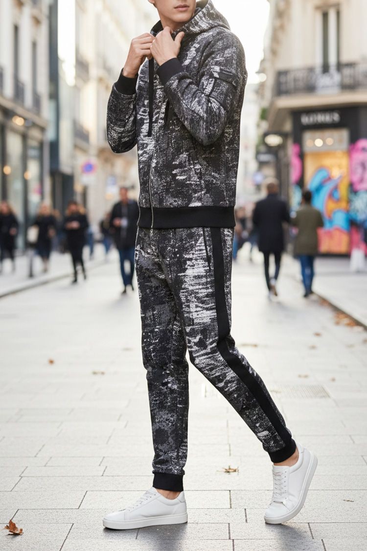 - Udoban muški dvodelni komplet sa nestandardnim krojem, koji se sastoji od dukserice i pantalona.