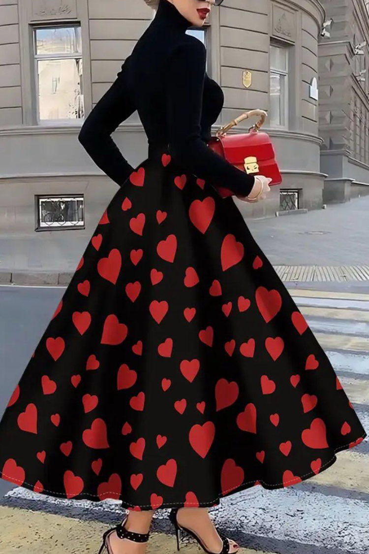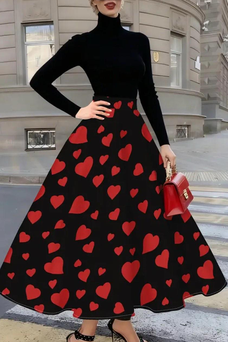 - Model ima visok struk, crnu boju, atraktivan kroj i trendi dezen srca.