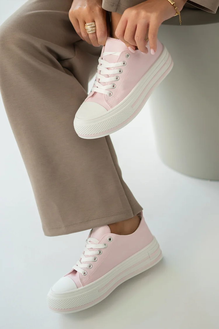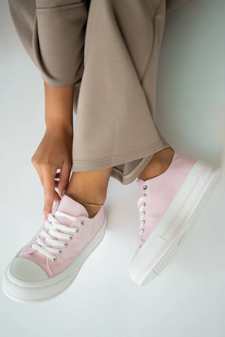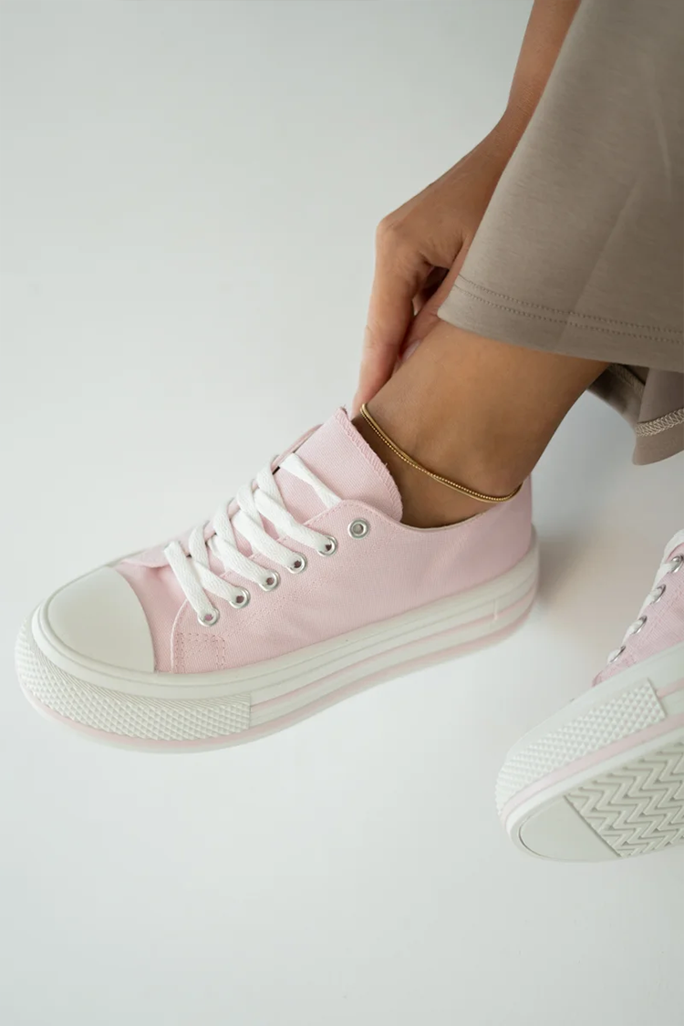 - Ženske patike od tekstila u trendi boji, sa vezicama i platformom, pogodne za svakodnevni život.