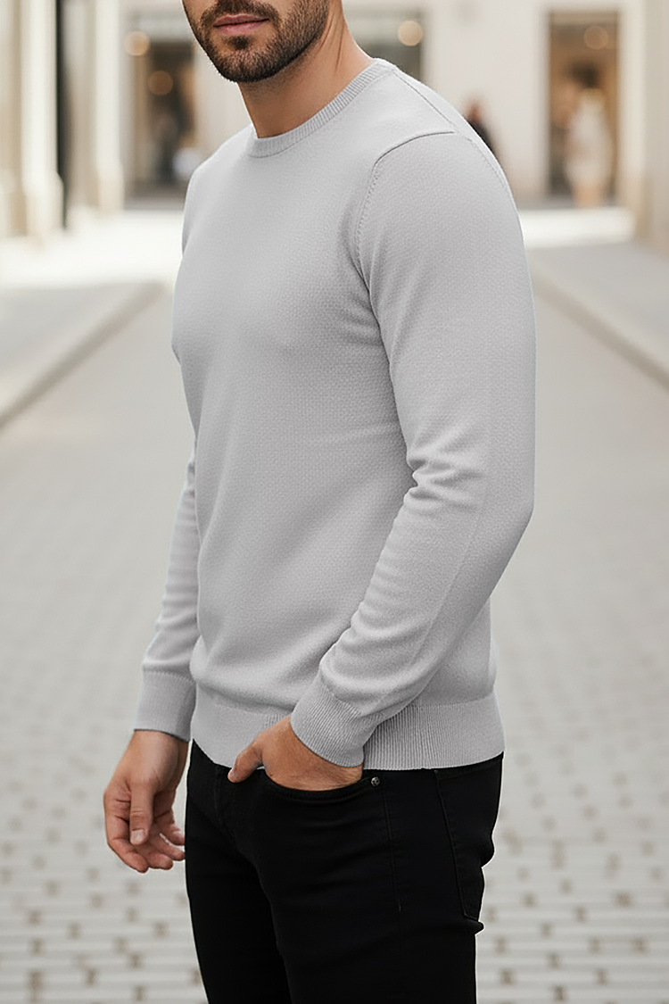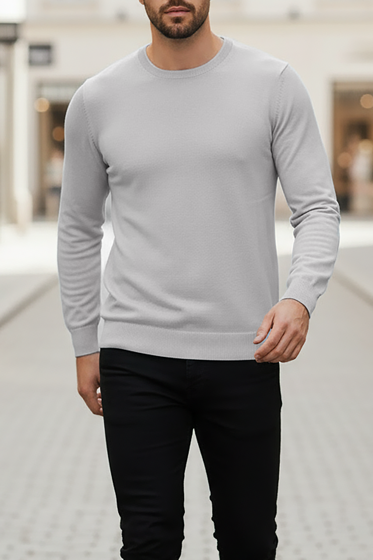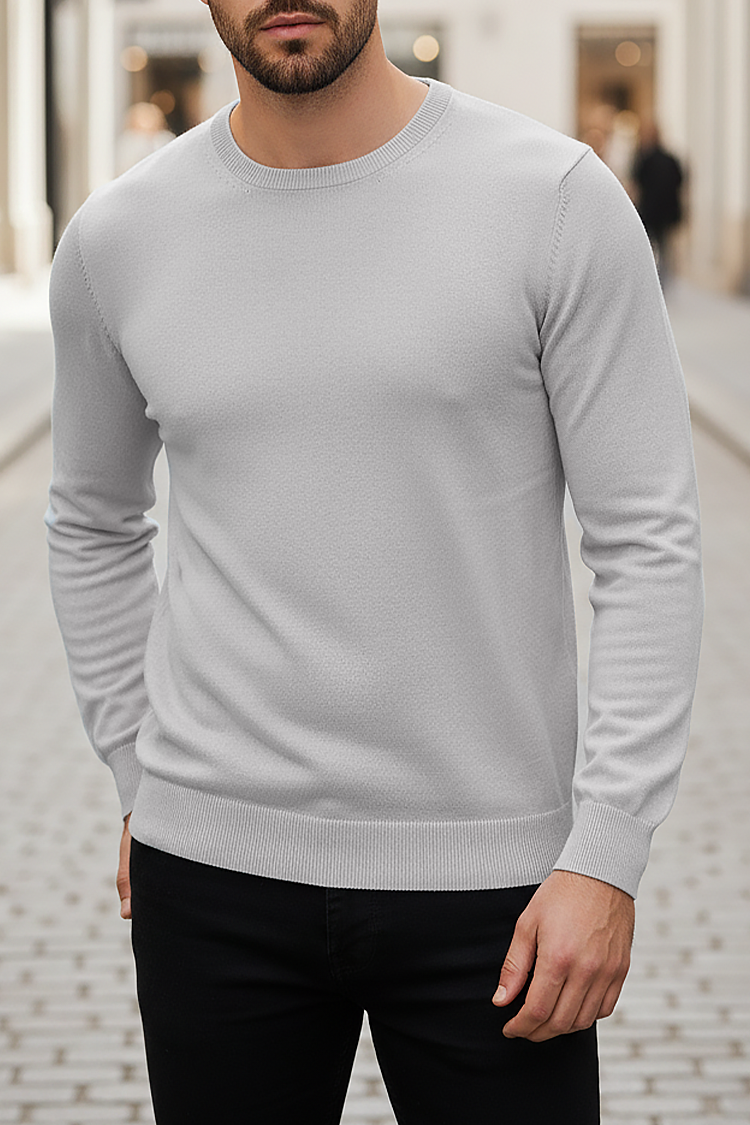 - Basic muški džemper sa okruglim dekolteom, pogodan kao dodatak svakodnevnoj odeći.