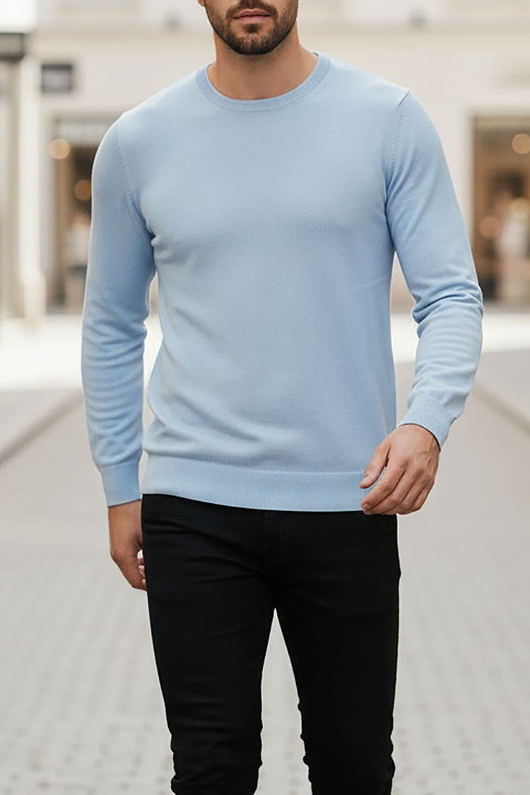 • Basic muški džemper sa okruglim dekolteom, pogodan kao dodatak svakodnevnoj odeći.