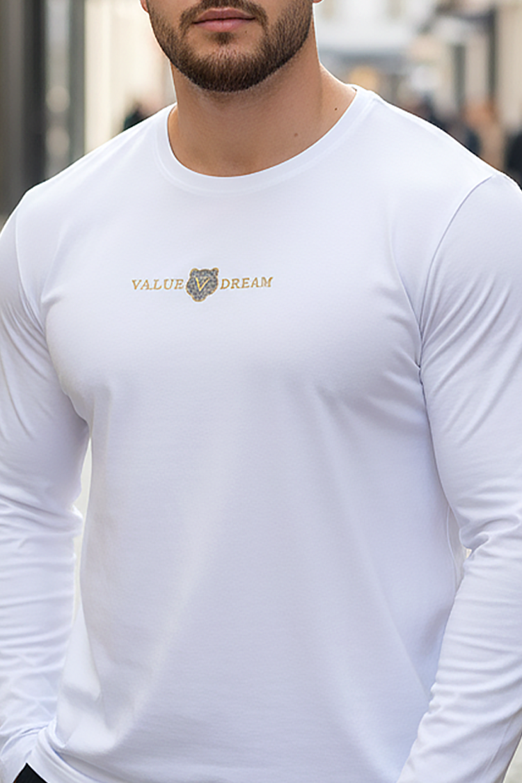 - Praktična muška bluza sa okruglim dekolteom, dugim rukavima i natpisom, pogodna za svakodnevno nošenje.