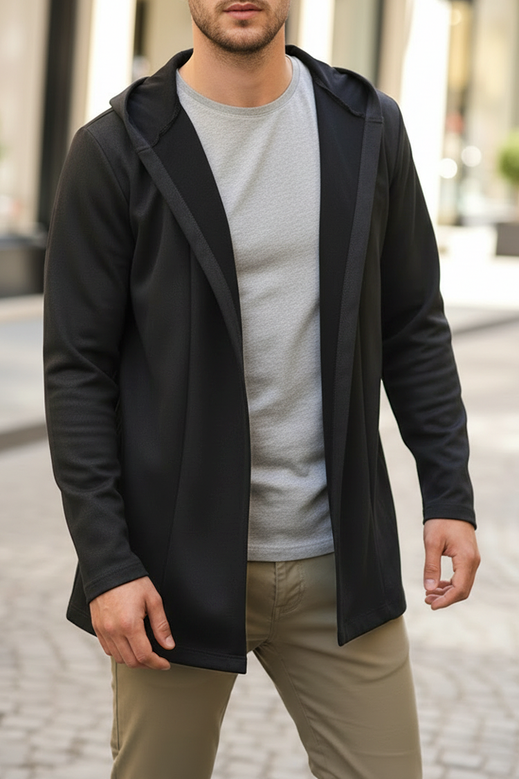 - Moderan i funkcionalan muški kardigan bez dugmadi u klasičnoj boji, pogodan za svakodnevni život.