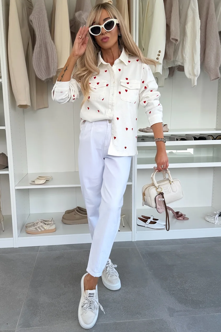 - Model ima duge rukave, kragnu, zakopčava se dugmetom i ima atraktivan dezen srca.
