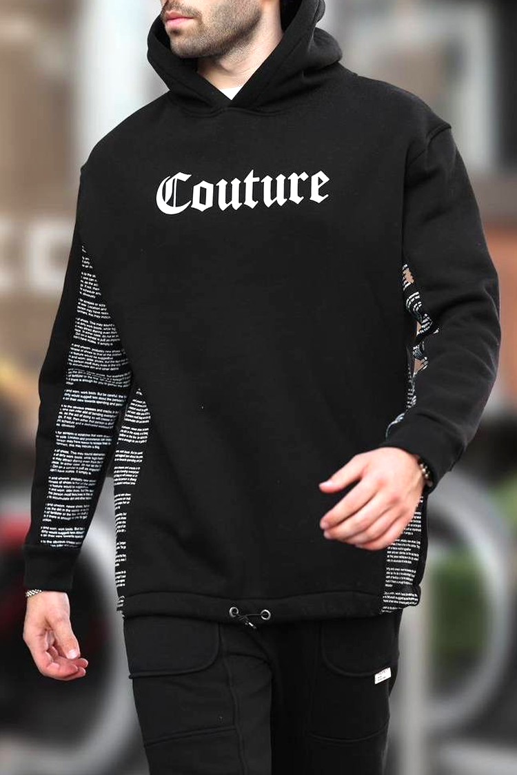 - Praktična muška dukserica u klasičnoj crnoj boji sa prepoznatljivim, kontrastnim natpisom, pogodna za svakodnevni život ili šetnju.