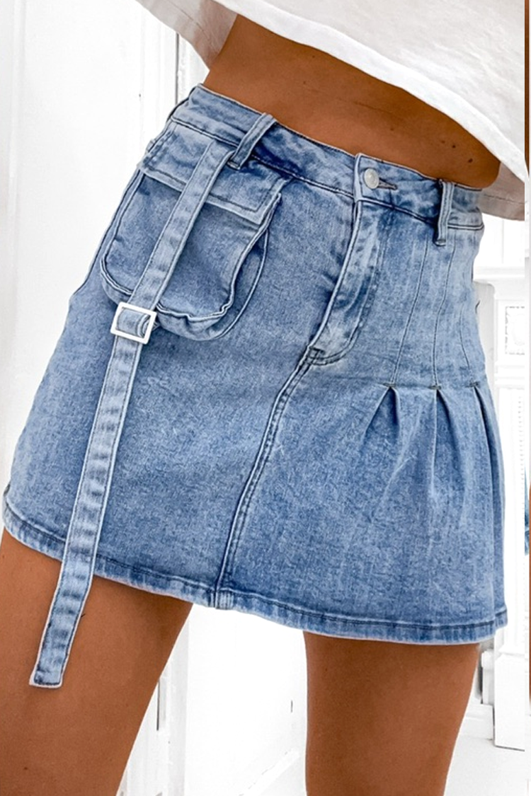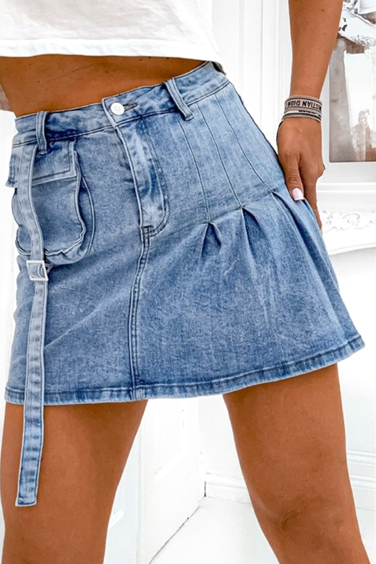 - Moderna suknja-pantalone sa dugmadima i kratke dužine, izrađena od visokokvalitetnog teksasa, pogodna za razne prilike.