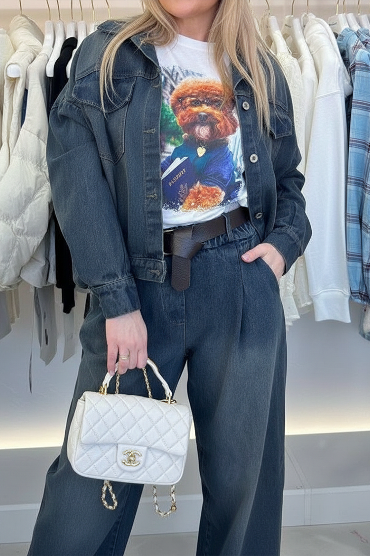 - Za moderan izgled, izaberite ovu teksas jaknu, pogodnu za svaki izgled. Izgledaćete sjajno u njoj!