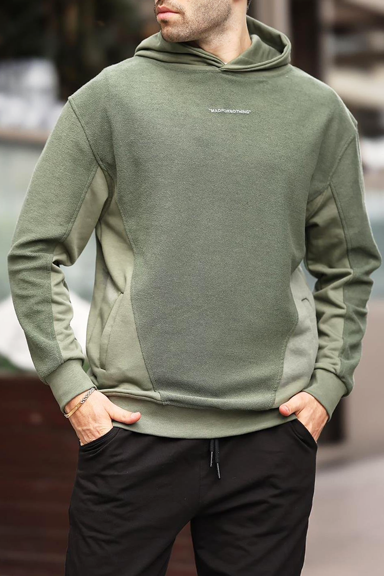 - Moderna muška dukserica čistog dizajna i kontrastnih panela koji ističu figuru.