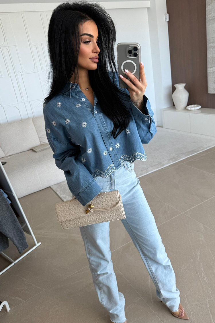 - Model ima duge rukave, kragnu, zakopčava se dugmetom i ima atraktivan cvetni dezen.