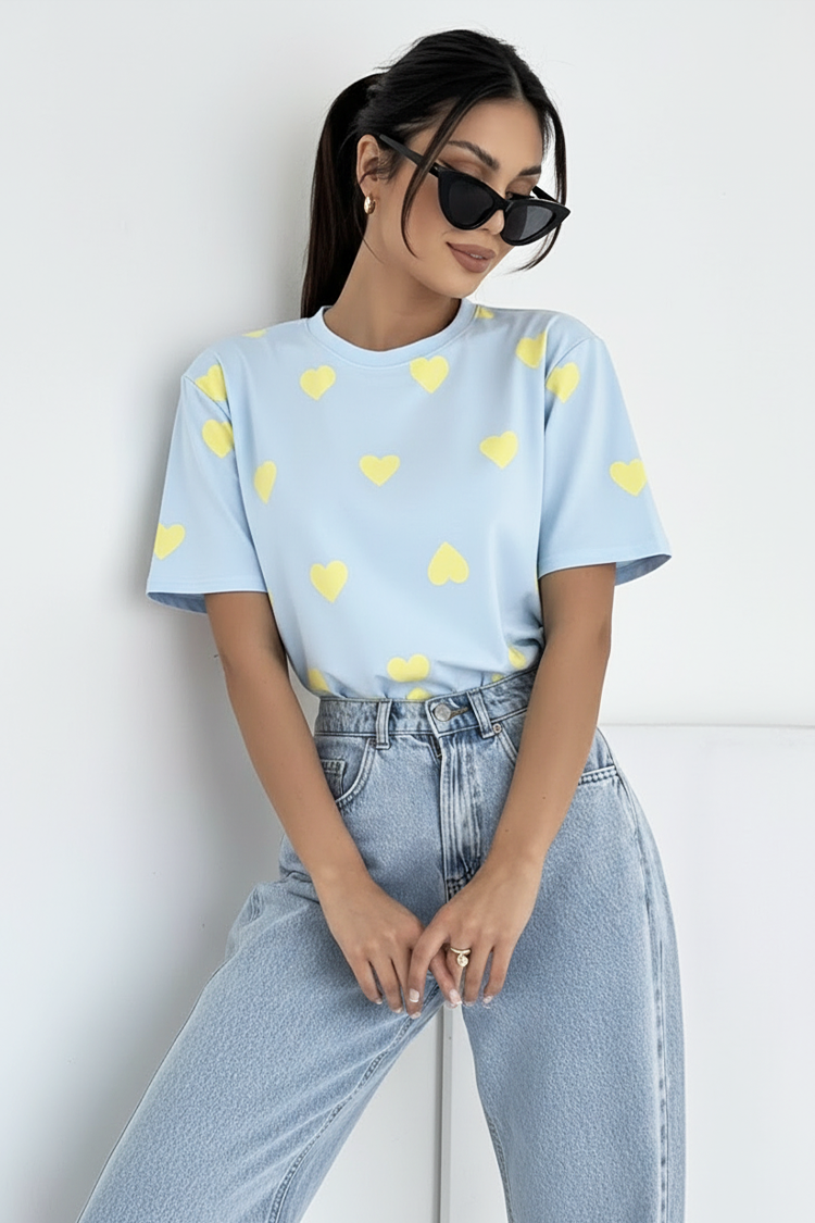 - Model ima kratke rukave, okrugli dekolte, precizan kroj i dezen srca.