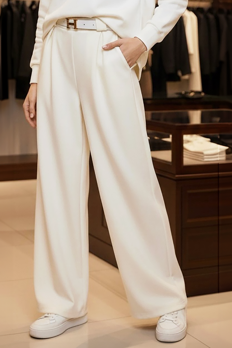 - Model ima visok struk, udoban kroj i široke nogavice.