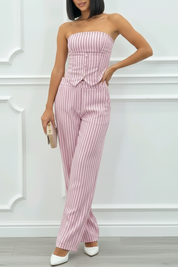 - Za svakodnevni život, izaberite dvodelni komplet sa prugastim dezenom.