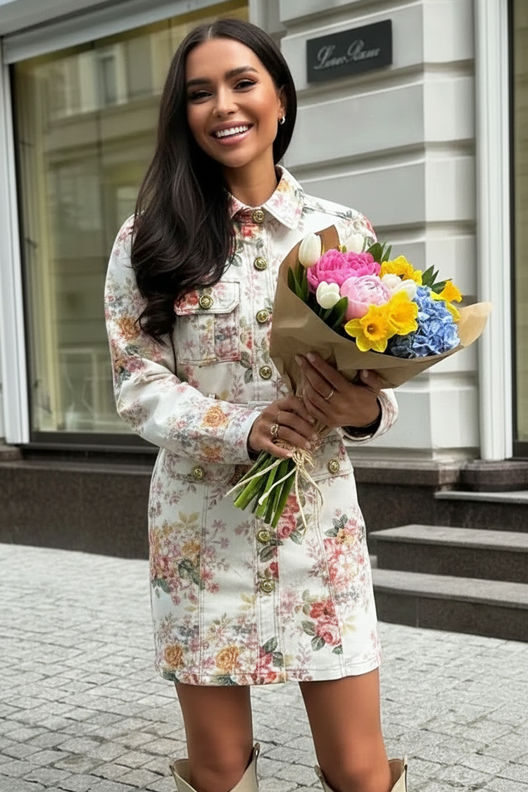 - Za atraktivan izgled, izaberite ovu kratku, teksas haljinu sa cvetnim dezenom, pogodnu za svakodnevni život.