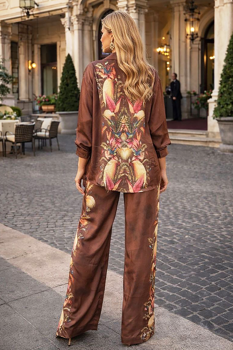 - Svakodnevni satenski ženski komplet od dva dela sa višebojnim dezenom.