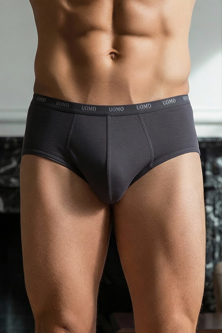• Muške gaće sa jednobojnim dezenom i lastišem sa natpisom, izrađene od pamučnog, prozračnog materijala.