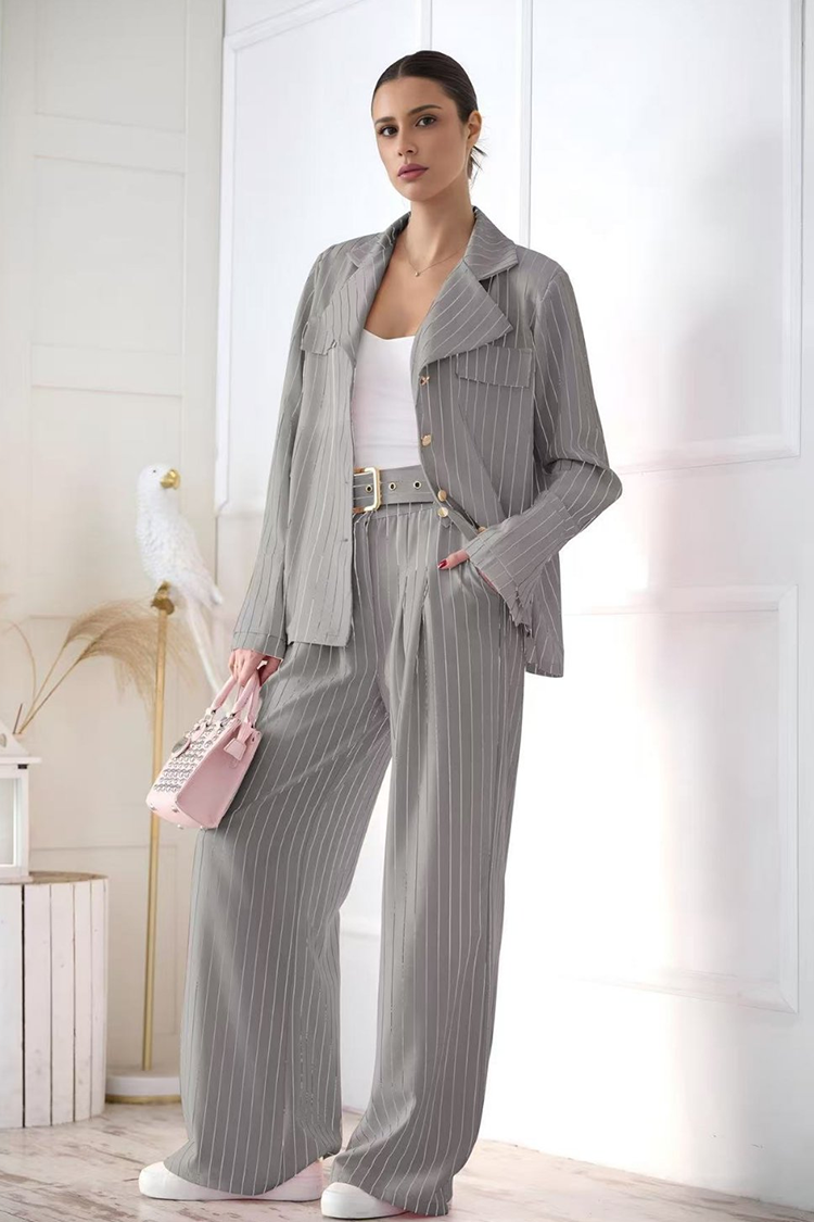 • Za vaš besprekoran izgled, izaberite ovaj trodelni komplet sa prugastim dezenom.