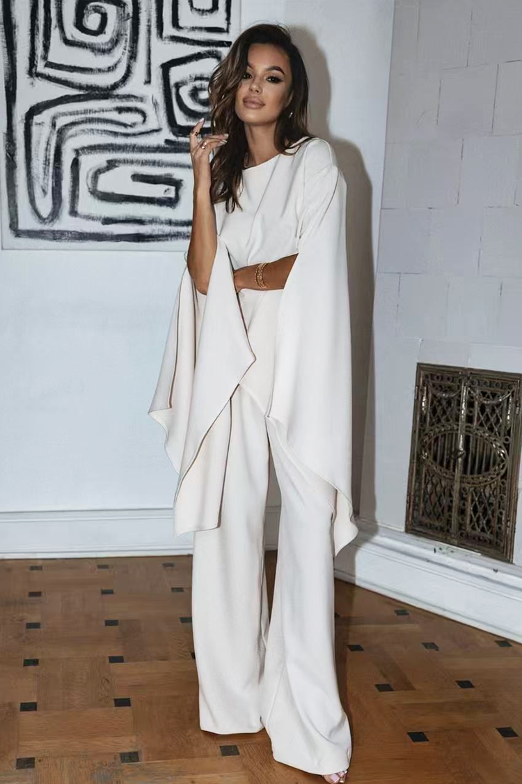 - Bluza ima udoban kroj, duge i atraktivne rukave. Pantalone imaju visok struk i širok, moderan dizajn.