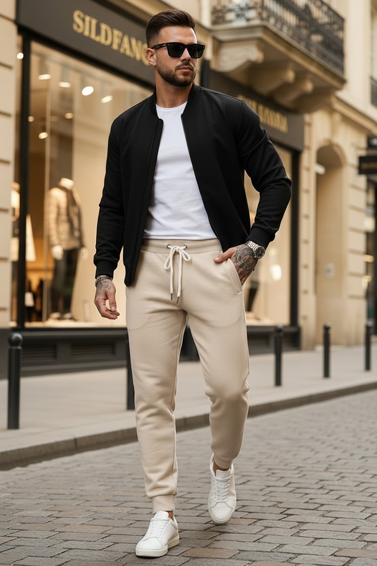 • Muške sportske pantalone čistog dizajna u trendi boji, izrađene od pamučnog materijala.