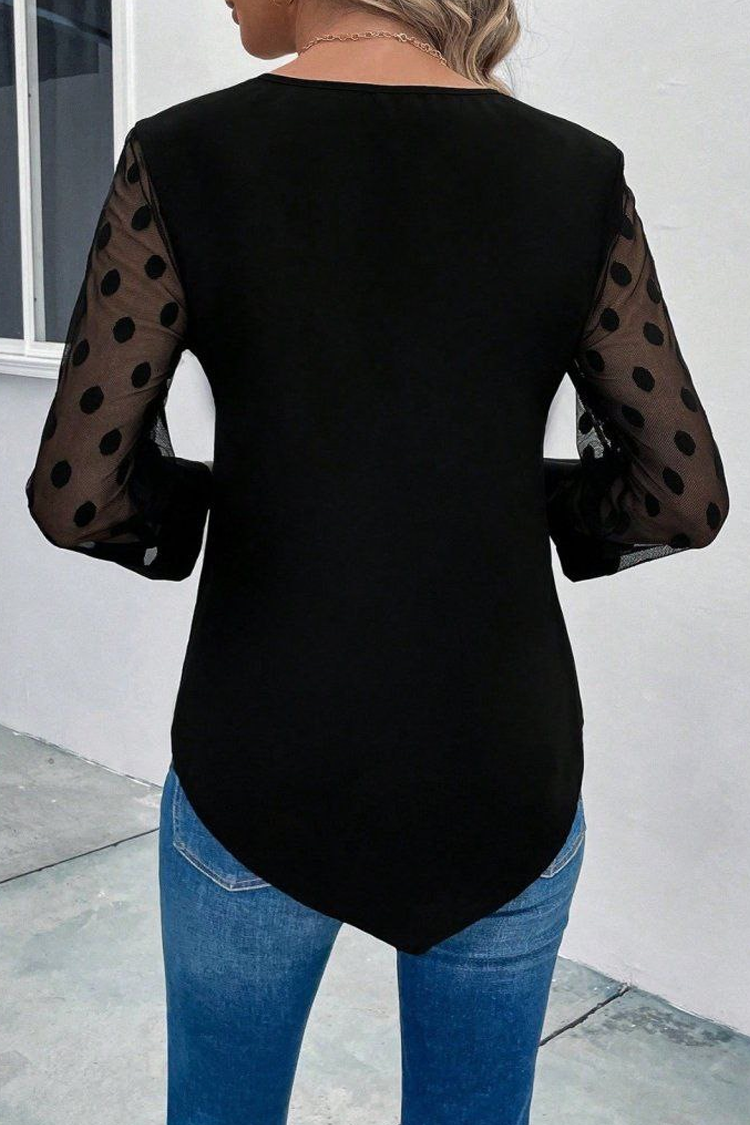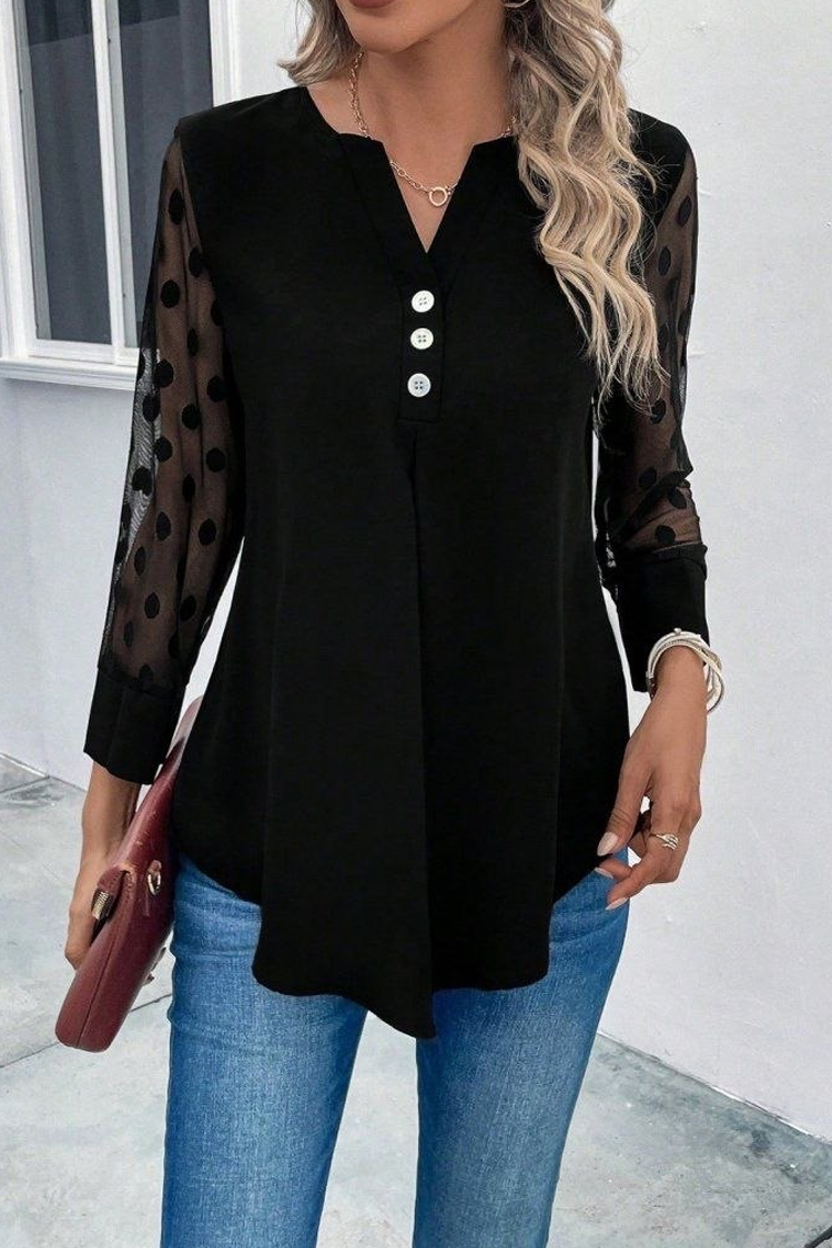 - Model ima atraktivan dizajn, rukave sa efektom tila i dezen tačkica i dugmadi na prednjoj strani.