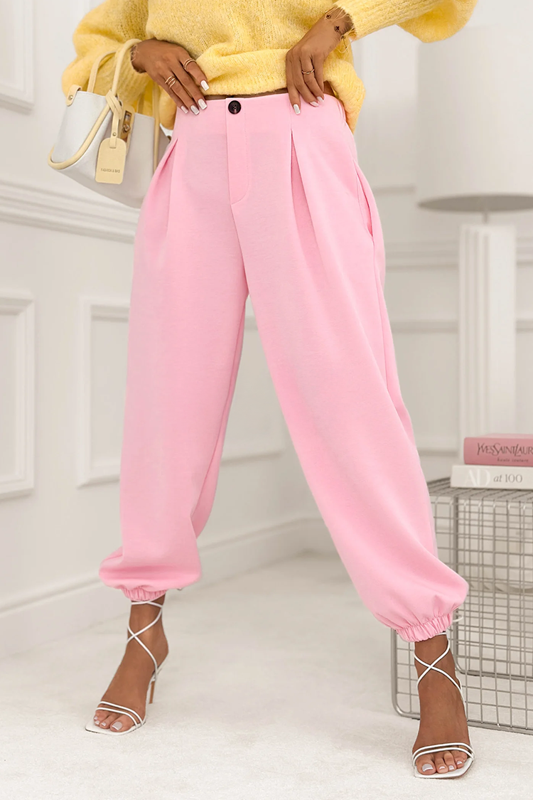 • Model ima visok struk, bočne džepove i lastiš na kraju nogavica.