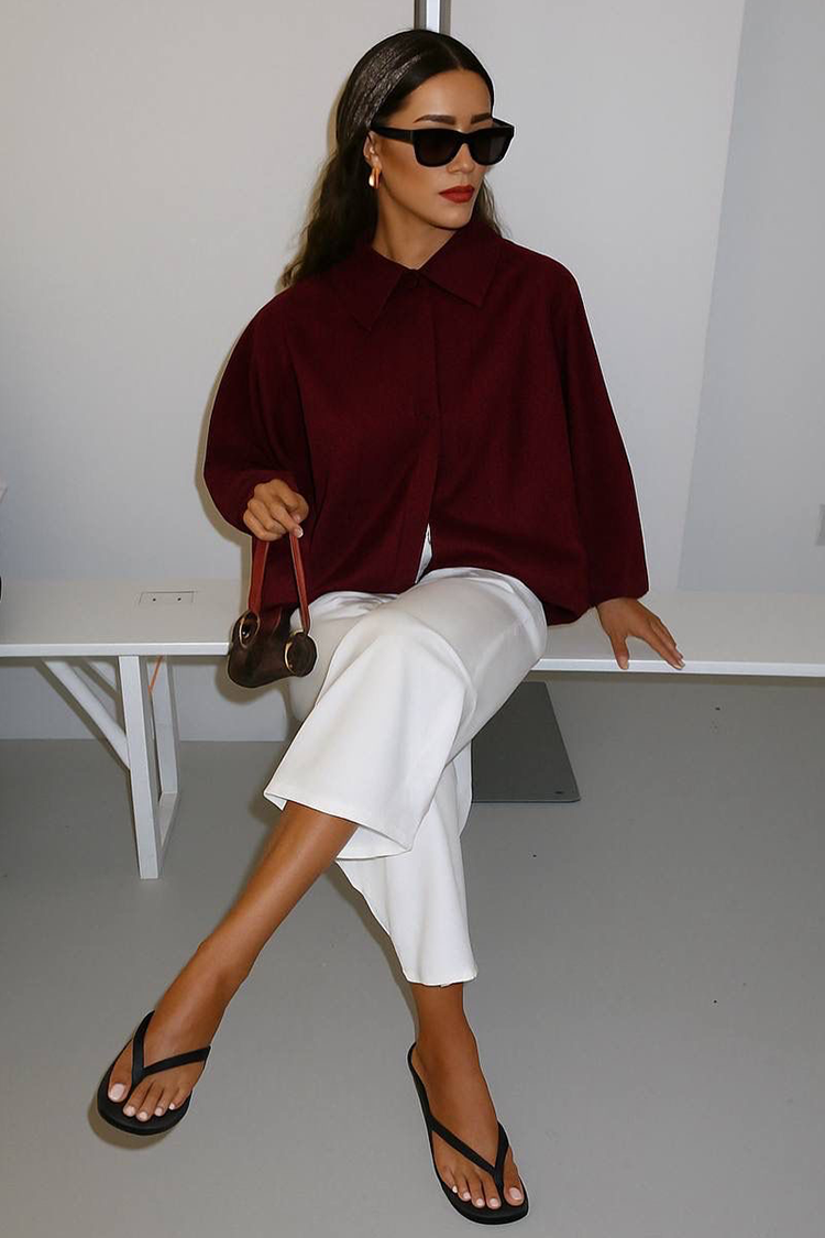 - Model ima atraktivan dizajn, dugmad, kragnu i efektne rukave.
