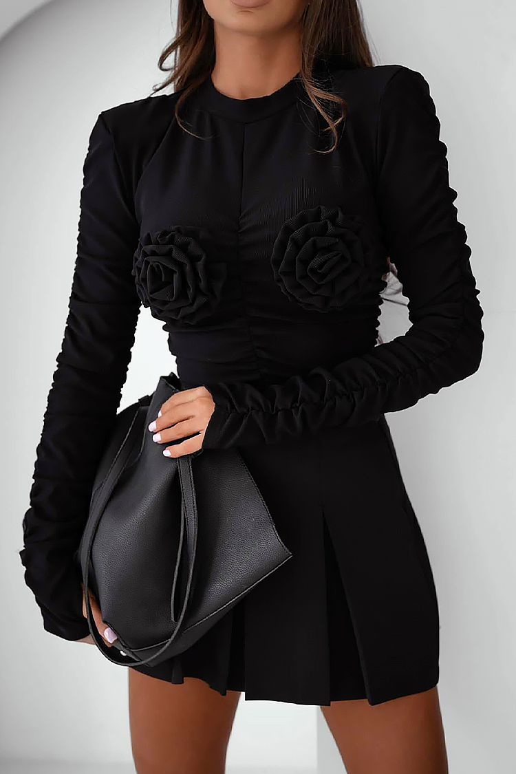 - Model ima koketne rukave, seksi dekolte, uski kroj i dekorativno cveće.