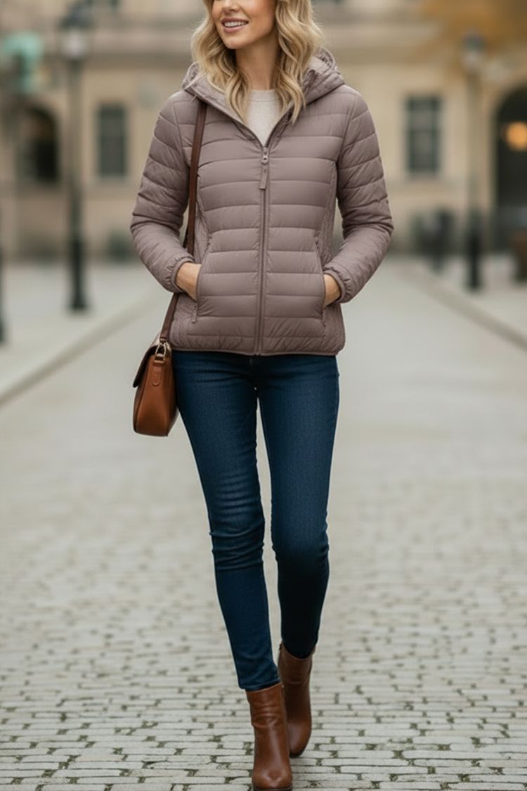 - Model ima kratku dužinu, udobnu kapuljaču i zatvaranje rajsferšlusom.