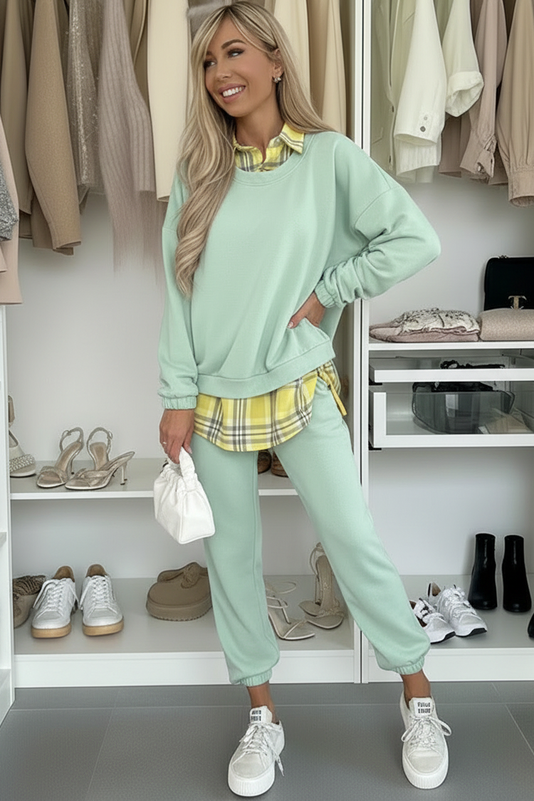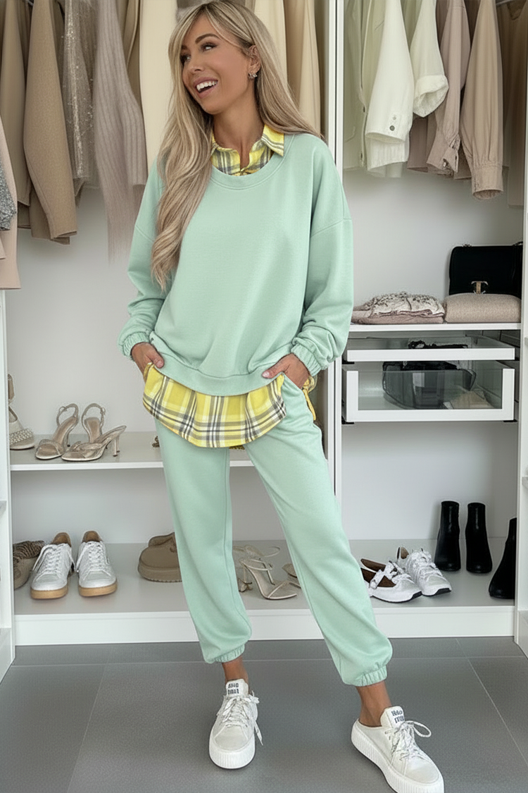 - Bluza ima udoban kroj i efektnu kragnu sa kariranim dezenom .
