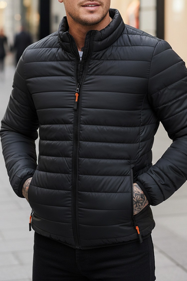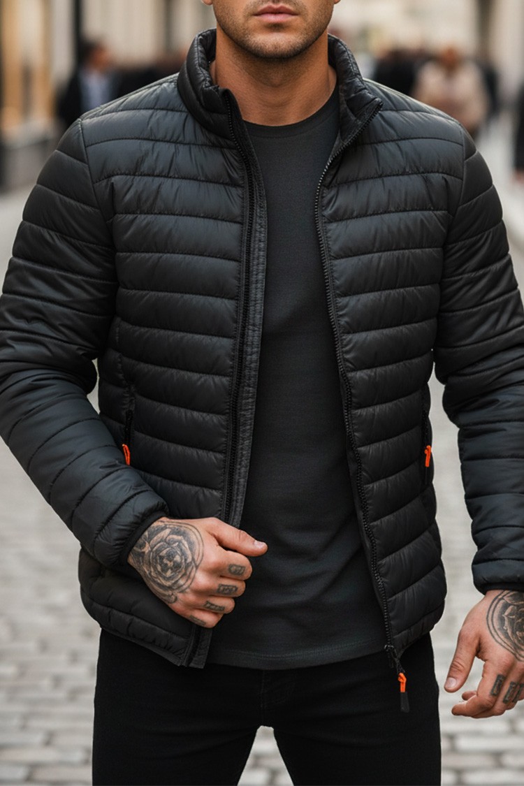 - Muška prošivena jakna jednostavnog dizajna u trendi boji, pogodna za prelazna godišnja doba.