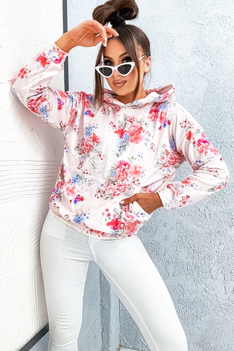 • Moderna ženska dukserica sa kapuljačom i cvetnim dezenom, pogodna za vašu modernu svakodnevicu.