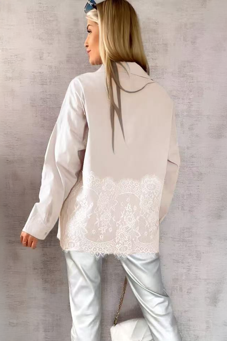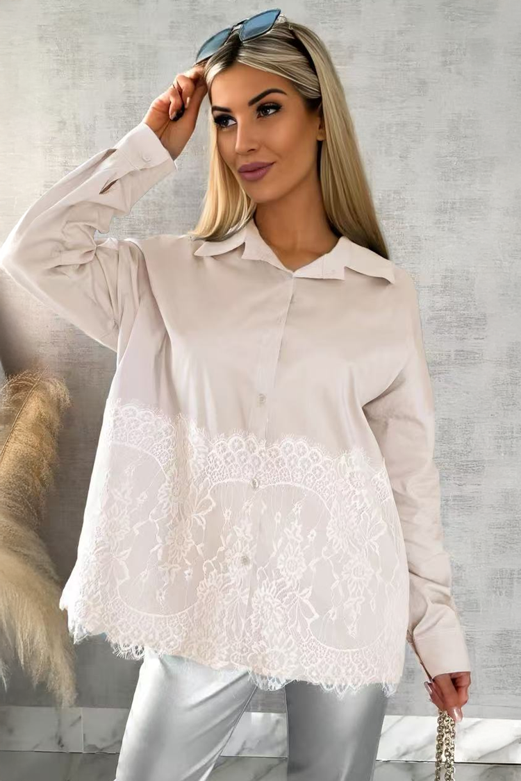- Model ima duge rukave, klasičan kroj, kragnu, dugmad i atraktivnu čipku.