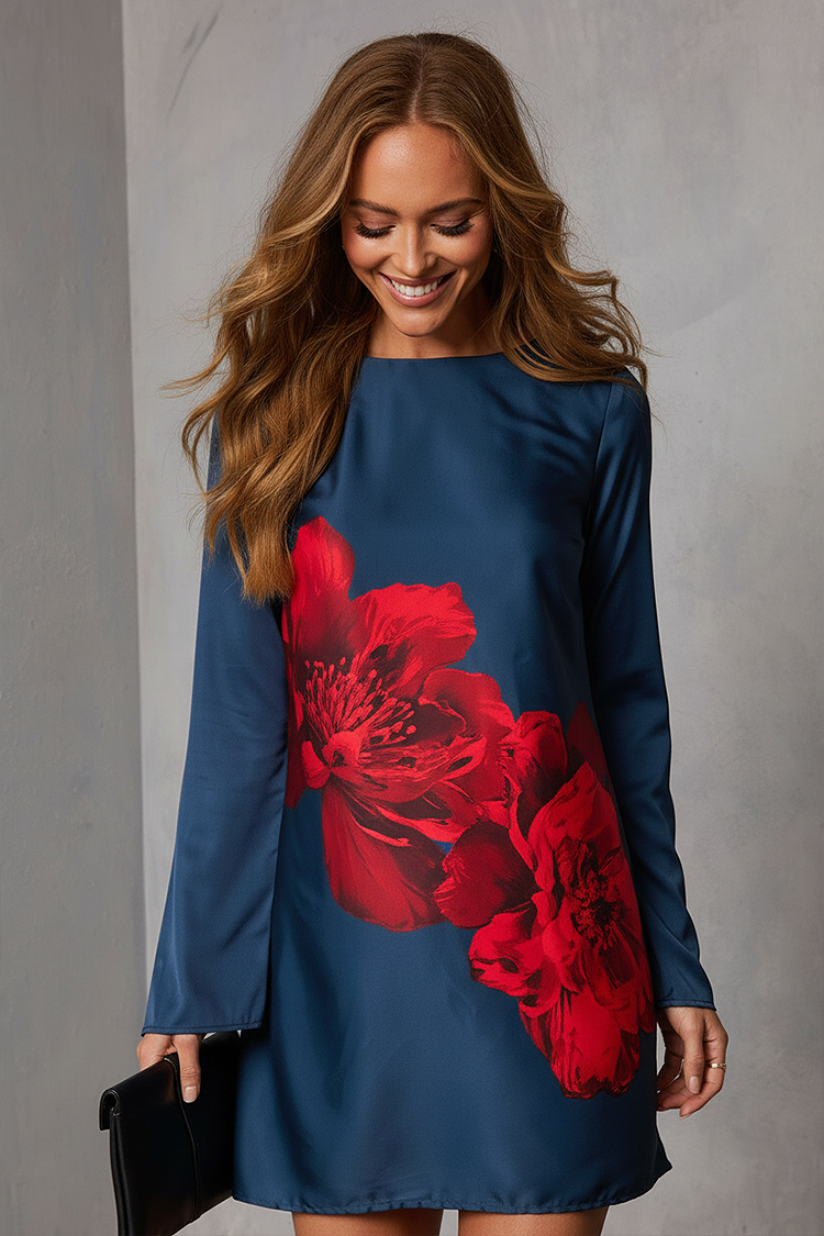 - Za moderan izgled, izaberite ovu kratku haljinu sa atraktivnim cvetnim dezenom.
